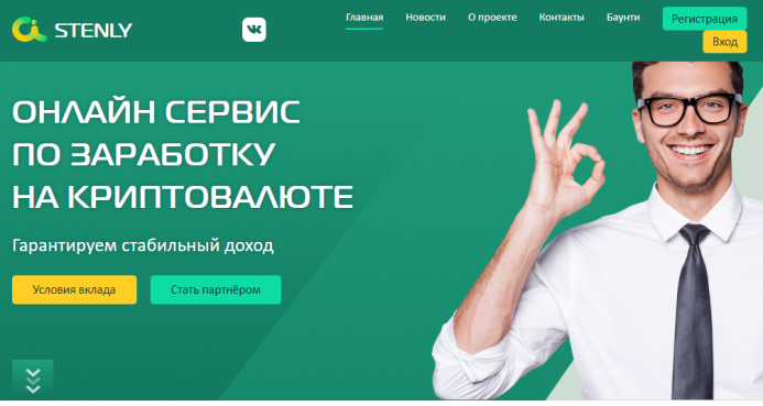 Какой-то непризнанный никем сервис STENLY уверяет что Вы можете инвестировать любую сумму начиная от 10 рублей и получать доход от вашего депозита. Срок вклада составляет 24 часа. Но по окончанию срока они выплатят копейки, но как только переведете сумму намного больше, а такая мысль у вас возникнет, вот тут они вас и заблокируют присвоив все себе. Это очень даже популярная мошенническая схема. Люди вносят самую маленькую сумму, и реально получают, но с большой они заблокируют и переведут все себе.