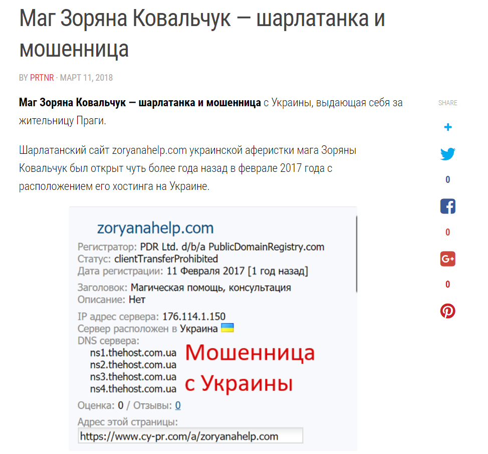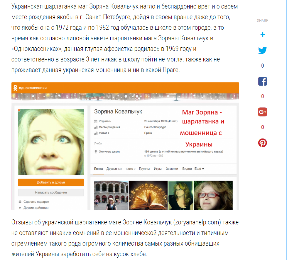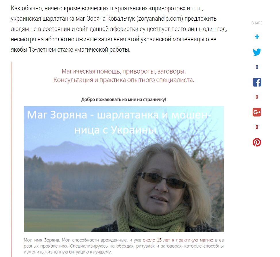 Другие разоблачающие украинскую шарлатанку мага Зоряну Ковальчук обзоры, можно почитать по следующим ссылкам: